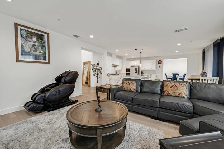 Built in 2024 in the sought after River Islands community, this stunning home blends modern living with exceptional comfort. An impressive entry welcomes you with soaring ceilings and abundant natural light. The main level features a bedroom with full bath, a formal dining room, and an open kitchen to family room layout ideal for everyday living and entertaining. The chef’s kitchen offers quartz counters, Whirlpool appliances, large island, generous cabinetry, and a walk-in pantry. A 3 car tandem garage and owned solar add convenience and value. Upstairs, a spacious loft anchors the well designed second floor. The expansive primary suite features a soaking tub, split vanities, and dual walk-in closets. In addition to two secondary bedrooms upstairs, an en-suite bedroom provides a private retreat for guests or multigenerational living. Laundry room with cabinetry and custom window coverings throughout complete the interior. Enjoy California indoor outdoor living with the covered California room and low-maintenance yard. River Islands offers picturesque riverfront trails perfect for walking and biking, a baseball park facility, community boathouse with bocce and sand volleyball courts, and numerous neighborhood parks all within walking distance to schools and recreation.