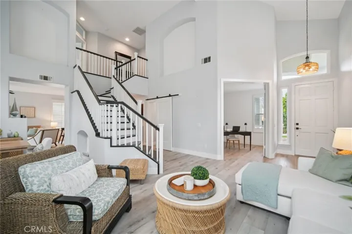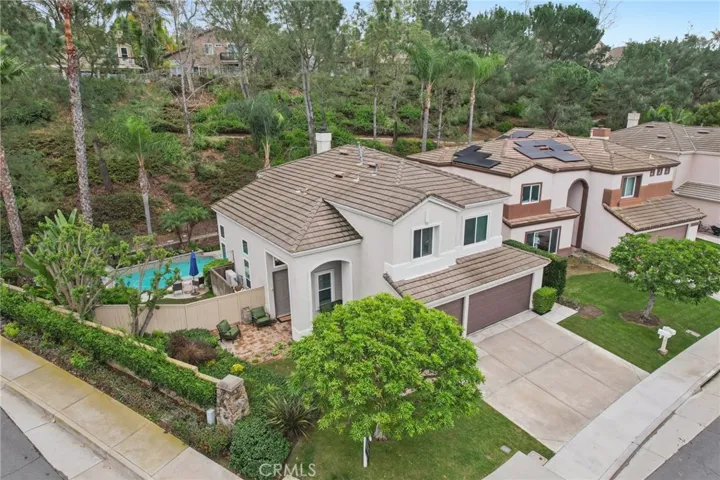 Corner lot on a cul-de-sac in one of Aliso Viejo’s most sought-after neighborhoods, 2 Blackbird Lane is a refined, resort-style residence that seamlessly blends timeless design with modern luxury. Thoughtfully upgraded throughout, this exceptional home offers 4 bedrooms and 3 bathrooms, including a main-level bedroom and full bath, ideal for guests, multigenerational living, or a home office. The chef’s kitchen is a true showpiece, featuring quartz countertops, designer tile backsplash, new premium appliances, and a built-in wine refrigerator, all opening gracefully to the inviting family room. Laminate flooring throughout and a custom wood staircase elevate the home’s warmth and architectural appeal. The primary suite is a private sanctuary, highlighted by dual quartz vanities, a spa-inspired luxe shower, an oversized soaking tub, walk-in closet, and a private water closet, creating a true retreat experience. All secondary bathrooms are equally refined with quartz vanities and upgraded finishes. Recent enhancements include new dual-pane windows for comfort and energy efficiency, along with a sleek epoxy-finished garage. Step outside to your own backyard oasis, designed for year-round enjoyment. The outdoor space features a resort-style pool and spa and a built-in BBQ, perfect for hosting unforgettable gatherings or relaxing in total privacy. Ideally located near award-winning schools, scenic parks and trails, upscale shopping and dining, and convenient freeway access, 2 Blackbird Lane delivers an elevated Southern California lifestyle where luxury, comfort, and location converge.