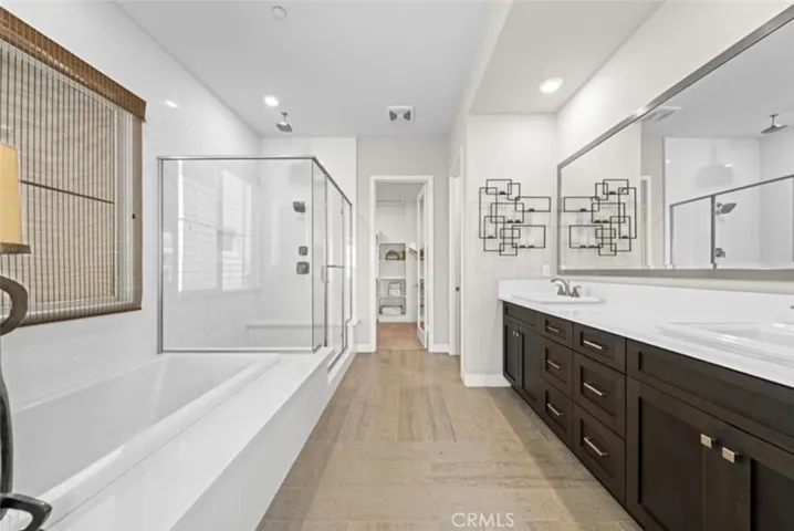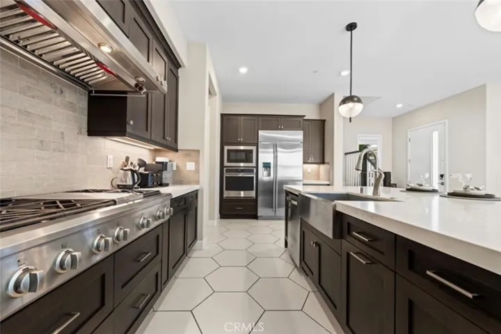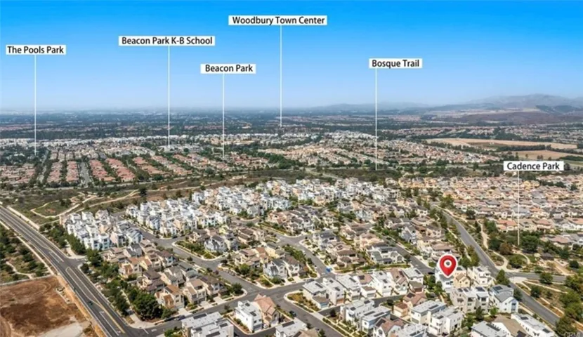 FORMER MODEL: This property is a Former Model for the Lennar Project “Encore”- The Property is a Single Family Detached Condo. This property has an excellent location and feel.WALKING distance to Cadence Park School. It is an end unit with a corner lot location and has a very “Open and Airy” feel. Excellent designer touches throughout this Former Model Home, GE Monogram “Professional Series” Stainless Steel Appliances with a 48″- 6 Burner + Griddle Gas Cook Top ands Monogram Professional Series Cooktop Hood, 42″ Stainless Monogram Refrigerator, Stainless Steel Dishwasher and a Stainless steel “Farmhouse” Sink, GE Monogram Oven and Microwave Oven..Large Island with Quartz Counter Top with bar stool seating area opening to the Great Room, beautiful cabinetry with self-close doors and drawers, There is a front patio with a “Fire Pit”. A beautiful fountain is located off the side patio from the Great Room. Property is just steps from Cadence Park and Bosque Trail. The exclusive lot area for this property is approximately 4600 sq.ft., per the “Condominium Plan”. There is a Leased efficient Solar System and a “Tankless Water Heater. Electric motorized window shades are in the parts of the Great Room and the Master Bed Room, there are wonderful Views of the surrounding mountains and hills, from the the spacious third level Bonus Room (with a built in Cabinet) and Covered Deck. Enjoy the world class amenities for the Great Park residents. This property is just steps to the park and hiking trails, These wonderful amenities included are 5 parks, 4 spas, basketball courts,, 2 Junior Olympic Pools,, Recreation Center, Sports Court, Dog Park, Biking Trails and Hiking Trails.