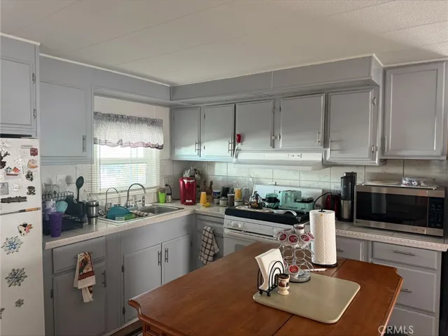 The home has two big Bedrooms and 2 full bath, plenty of cabinet space in the kitchen and a portable island as well. The dining is of course right off the kitchen. The huge living room spans the entire length of the home and has the best mountain views. Inside laundry room.