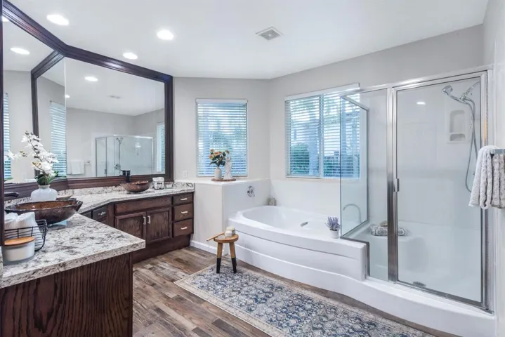 An Elegant Retreat Designed for Exceptional Living This one-of-a-kind residence offers an atmosphere of quiet sophistication and effortless elegance. Surrounded by beautifully manicured landscaping, the home welcomes you with timeless charm and a sense of serenity that carries throughout every space. Inside, a graceful spiral staircase serves as a striking architectural centerpiece. Plantation shutters, beautiful LVP flooring, and refined tile finishes create a cohesive, elevated aesthetic, while the modern remodeled bathrooms bring a fresh, contemporary touch to the home’s classic appeal. The outdoor spaces are equally captivating. A sparkling pool with a cascading waterfall sets a tranquil tone, complemented by an enchanting entertainer’s garden designed for gatherings both intimate and grand. The impressive outdoor cabana—complete with stainless steel appliances and its own bathroom—offers a luxurious extension of the home’s living and dining experience. Thoughtfully enhanced with 35 solar panels for energy efficiency, this property blends elegance with modern efficiency. A rare offering that harmonizes beauty, comfort, and sophistication—crafted for those who appreciate a home with true presence.