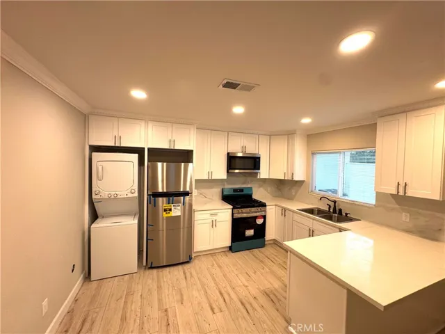 Be the first to live in this stunning modern ADU unit, offers a private and quiet retreat while maintaining a central location in Los Angeles. The heart of the home features a seamless flow between the living room, dining area and kitchen-Ideal for entertaining or a home office set up, equipped with a brand new custom cabinetry, elegant quartz countertops, and stylish breakfast bar for casual dining, laminate flooring throughout. This is a stand alone side house unit with its own private entrance and a private back yard.