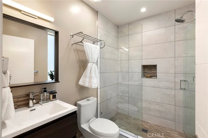 Tucked away on one of Southwest’s most special horseshoe streets, this ocean-view home offers true serenity. Newly-built in 2017 from the ground up overlooking the lush canyon beyond, this offering is among the finest recent opportunities. Located between the Riviera District & Lasuen neighborhoods, the location couldn’t be better. Surrounded by mature trees, the home offers a level of privacy rare to come by this close to the beach. Strategically designed, this custom-build offers a sophisticated level of contemporary architecture with ocean views from the upper living space. Upon arrival, the front elevation spans an impressive 116’ of frontage with a generous 6,800 SF lot. A dynamic design welcomes you inside to a formal entry. Large windows flood the space with natural light through a custom wrapping wood staircase. On the lower level, the primary suite faces the canyon with its own private deck, a luxurious bathroom, dual sinks, walk-in shower, & spacious walk-in closet – very serene & private on the canyon. Down the hallway, two bedrooms share a modern Jack&Jill bath with dual sinks, privacy toilet, & walk-in shower. Beyond that, a full suite with elevated ceilings, (ADU potential: separate access, loft, futured for kitchenette or laundry). Up an artistic staircase leads to modern & open living spanning the kitchen, dining, & family room, all framed by walls of glass, high ceilings, & wide plank flooring. A European-inspired kitchen features stainless appliances, a large island with bar seating, walk-in pantry, balcony, skylights & picture window to the crisp ocean view down the canyon. Flow-through dining offers major flexibility with space for a massive dining table & unique custom built-in wood storage console. Light-filled living with a tiled fireplace anchoring the room. 8’ stacking window walls lead to a spacious deck with ocean views through the trees creating perfect indoor-outdoor flow. Mature trees screen the rear side of the deck & create an lush outdoor setting. Other values: no HOA, zoned A/C, groovy Porcelanosa tile, wired shades, finished garage with interior access, refreshed landscaping, high-end fixtures, indoor laundry, & an outdoor shower. Walk to nearby ‘locals’ favorite’ beaches, take the 2.5 mile beach trail to restaurants, coffee shops, bars, & the iconic SC Pier. A fun bike ride to world-class surf at Trestles. An exceptional opportunity for a newer construction home in one of Southwest San Clemente’s best locations!