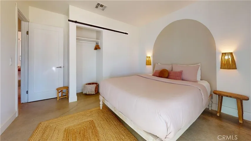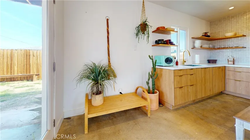 Come see this amazing and Unique 3 bedroom 2 bathroom home in the heart of Joshua Tree. The modern fit and finish of this home is beautifully showcased by tons of natural light from the skylights and windows. Enjoy the fenced back yard with hot tub, swing chairs and patio cover that is illuminated with lights. Open floor plan living room and kitchen give an expansive space to enjoy the home. Just a short distance from everything Joshua Tree has to offer including restaurants, farmers market and stores. Not to mention the National park entrance is just a few minute drive away.