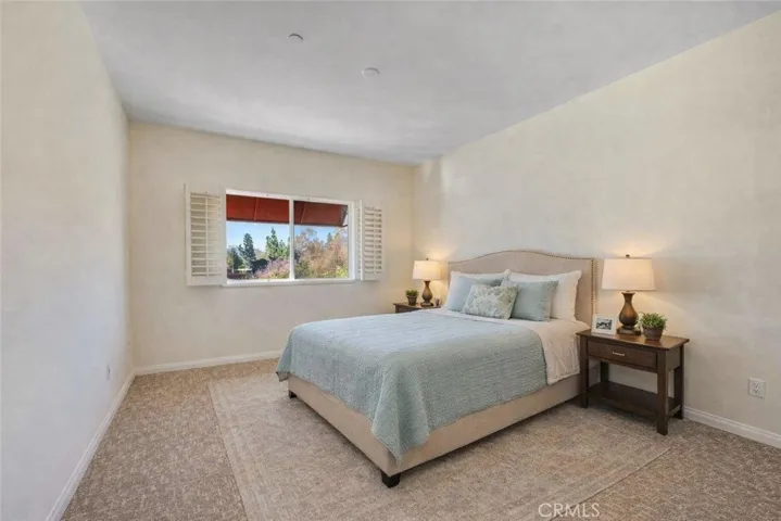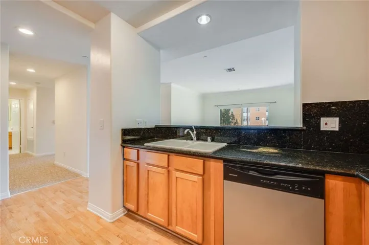 Top-floor condominium located adjacent to CSUN with serene treetop views. This light and bright unit features fresh interior paint and newer carpet. The open-concept kitchen overlooks the living room and dining area. Kitchen is equipped with stainless steel appliances, including a built-in microwave, refrigerator, dishwasher, recessed lighting, and ample cabinetry. The living room offers crown molding and sliding glass doors to a private balcony, perfect for enjoying the peaceful treetop setting. Primary bedroom offers a walk-in closet and an en-suite bathroom with a separate tub and shower. Two additional bedrooms feature plantation shutters and mirrored closet doors. A full hallway bathroom includes tile countertops and flooring, along with a convenient guest bathroom for added functionality. In-unit laundry closet includes a stackable washer and dryer. Community amenities include a pool, built-in BBQ areas, fitness center, and a welcoming lobby sitting area. This unit includes two tandem parking spaces. An ideal opportunity for owner-occupants or investors seeking a prime Northridge location near CSUN.