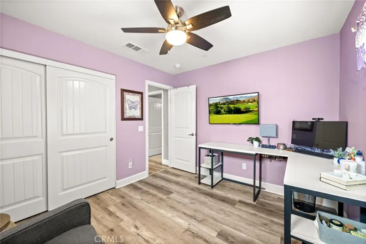 PRICE REDUCTION! Seller Motivated! Turnkey!!!!Beautifully upgraded 4 bed 3 bath home with flexible office/5th bedroom/ mother in laws bedroom potential downstairs. Built in 2018, move -in ready and offers everything your buyer is looking for-and more. Step inside to discover luxury vinyl flooring throughout the main living areas, a spacious open concept layout, and a chef’s dream kitchen featuring a massive center island. Home comes with all stainless steel appliances. Upstairs, you’ll find four generously sized bedrooms and a versatile loft space perfect for retreat. The downstairs office includes a closet and a bathroom close making it perfect to convert to mother in laws area. Step outside to your private backyard oasis complete with low- maintenance turf, a covered patio with fans and lights and a designated garden area. Other highlights include solar panels for energy efficiency, attached 2-car garage,electric charging station in garage, modern lighting fixtures and thoughtful upgrades throughout. Low HOA only $85 a month. All located in a highly desirable master-planned community that offers resort-style amenities including : Tennis & pickleball courts baseball fields community parks & playgrounds Multiple pools walking trials and much more. Don’t miss your opportunity to own a stunning, turnkey home in one of Corona’s most vibrant neighborhoods!