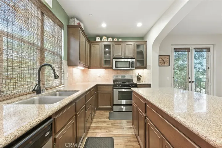 Upgraded 3-bedroom, 2.5-bath end-unit townhome offering *1,825* SQUARE FEET of living space in the gated community of Owens Cove at Dos Lagos. END UNIT with only one shared wall, this home provides enhanced privacy and exceptional walkability — just steps from shopping, dining, golf, and outdoor recreation at the vibrant Dos Lagos Shopping Center. Inside, an open-concept layout is filled with natural light. The chef’s kitchen is the heart of the home, featuring stainless steel appliances, granite countertops, a large center island, abundant cabinetry, pantry, recessed lighting, and ample prep space. The spacious formal dining room includes French doors that open to a charming Juliet balcony, while the bright living room offers a cozy fireplace — perfect for relaxing or entertaining. Also on the main level are a full-sized laundry closet and a private balcony ideal for enjoying your morning coffee or evening breeze. Upstairs, the expansive primary suite includes its own Juliet balcony, walk-in closet, and a luxurious en-suite bathroom complete with an enormous soaking tub, glass-enclosed shower, dual vanities, and a separate seated vanity. Two additional bedrooms are located nearby and share a full bathroom with a tub-shower combination. Additional features include an attached two-car garage. Community amenities include a resort-style pool, spa, clubhouse, and secure gated entry. Ideally located across from Trader Joe’s and the Dos Lagos Shopping Center, you’ll enjoy immediate access to restaurants, shops, a movie theater, and more. Plus, the scenic Dos Lagos Golf Course is just steps away!