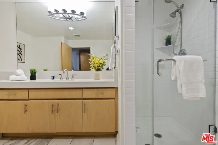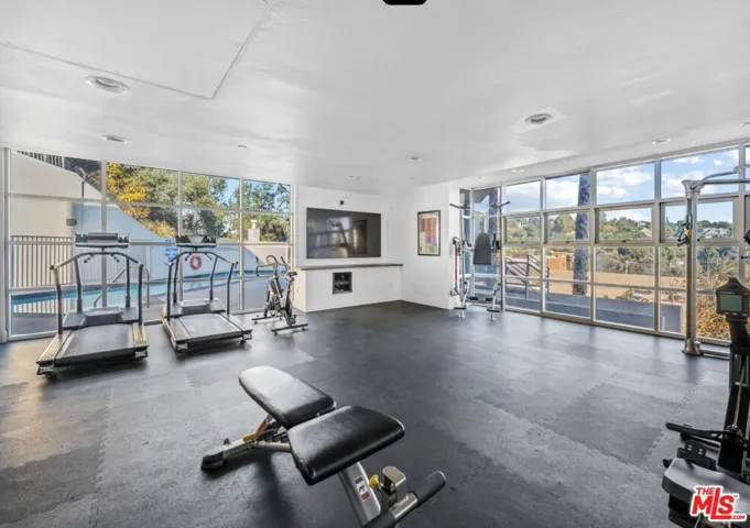 Located in a desirable central Brentwood location, this private and well appointed 2-bedroom, 3-bath townhouse style condo offers a spacious, comfortable layout spanning 1,576 square feet. The upper level features an open-concept design with a modern kitchen equipped with stainless steel appliances, a dedicated dining area, and a generous living room with marble floors, city and mountain views, a gas fireplace, and a large guest powder room. A sun-drenched glass-enclosed bonus space makes the perfect office or reading nook. Downstairs, both bedrooms offer privacy and comfort. The expansive primary suite includes a sitting area, two closets (including a walk-in), and en-suite bath with a soaking tub and separate shower. The second bedroom also enjoys its own full bath. This level also includes a side-by-side laundry area, extra storage, and direct access to a private outdoor patio. Additional amenities include Nest thermostats on each level, side-by-side parking spaces, ample guest parking, and a dedicated storage cage. There are dual entrances, one on each level, providing added flexibility and convenience for daily living, guests, or a work-from-home setup. The secure building offers resort-style living with a pool, spa, sauna, and gym. Ideally located near UCLA, the 405, top-rated schools, and Brentwood’s premier shops and dining.