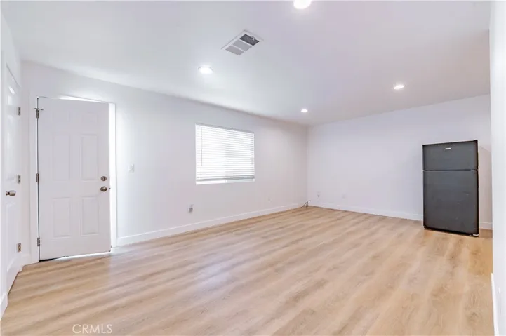 Explore this beautifully remodeled studio unit featuring high ceilings, a spacious open layout, recessed lighting, and stylish vinyl flooring throughout. The unit includes an electric cooktop, refrigerator, and a fully remodeled bathroom. Enjoy generous living space filled with abundant natural light. Conveniently located near local amenities, highly rated schools, and easy freeway access. Parking includes one driveway space.