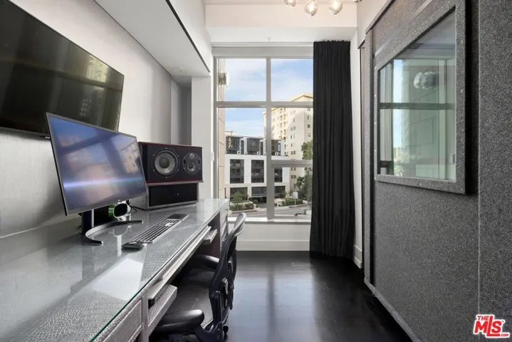 Residence 403 at The Carlyle offers a rare blend of privacy, design, and full-service luxury living within one of Los Angeles’ most iconic buildings. Completely remodeled and offered fully furnished with custom pieces from Roche Bobois and Visionnaire, this residence is accessed by a private elevator foyer that opens directly into expansive living and dining spaces with nearly eleven-foot ceilings, rich wood flooring, custom built-ins, and a striking onyx fireplace. The chef’s kitchen features Sub-Zero and Miele appliances, a dedicated espresso station, and a Snaidero design highlighted by a dramatic Panda marble waterfall island. The primary suite is designed as a private retreat with an oversized custom walk-in closet and a spa-inspired bath showcasing an Unbescheiden soaking tub imported from Germany, sculptural stone surfaces, TOTO toilets, and Swarovski crystal fixtures. Additional highlights include a private salon and wellness suite with infrared and traditional saunas, advanced European spa technologies, and a fully soundproofed professional recording and production studio. The residence is equipped with a fully integrated smart home system, surround sound, and security. Building amenities include 24-hour concierge and valet, a residents’ lounge by Fendi Casa, a fitness center with Pilates reformer, a temperature-controlled wine cellar with private lockers and dining room, a landscaped outdoor terrace with pool and spa, and dedicated on-site staff. Ideally located along the Wilshire Corridor near UCLA, Beverly Hills, Bel Air, and Santa Monica.