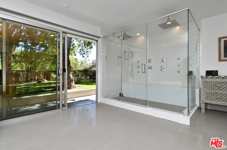 Mid-Century Modern. Palm Springs Soul. Woodland Hills Views. Experience the essence of elevated California living in this exquisite single-story Mid-Century retreat, reimagined with sophisticated Palm Springs energy. Privately gated and perfectly sited on a premier 26,000 sq. ft. pad, this 4-bedroom, 5-bath architectural showcases a seamless harmony between timeless design and relaxed luxury. Step inside to a sunlit great room where clean lines and curated textures create an atmosphere of modern serenity. The open living area unfolds effortlessly a fireside lounge, TV retreat, dining space, and a chef’s kitchen designed for connection and flow. Walls of glass invite the outdoors in, revealing panoramic treetop and city-light views. The backyard is pure California magic a sparkling pool and spa, firepit, multiple patio lounges, and a conversation outdoor bar framed by desert-inspired landscaping and views of the mountain’s and city lights beyond. It’s the ultimate entertainers’ oasis. The chef’s kitchen stands as a contemporary showpiece, featuring Wenge cabinetry, artisan glass backsplash, premium stainless appliances, and an 8-foot waterfall island that anchors the open-concept design. The bedroom wing features a tranquil primary suite captures resort-style living, with sliding glass doors opening to the private outdoor retreat. The sumptuous primary bath is bathed in natural sunlight and offers an oversized dual-head shower, deep soaking tub, and elegant double vanity. From here, sliding glass doors lead to a serene grassy lawn shaded by mature trees, a perfect space for meditation, morning yoga, or quiet reflection. Every detail has been thoughtfully curated, Porcelanosa and Italian tile bathrooms, hand-stained solid doors, custom aluminum windows, and wide-plank engineered hardwood floors. The gated drive provides ample guest parking and sports court for recreation. A rare opportunity to own an architectural statement revived for today’s lifestyle timeless Mid-Century design meets relaxed California luxury in one of the most coveted south-of-the-Boulevard locations.