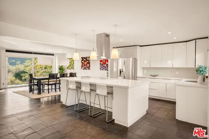 Perched on a quiet cul-de-sac, this serene three-story contemporary residence spans approximately 3,544 square feet and offers 6 bedrooms and 6.5 bathrooms. Thoughtfully designed and filled with natural light, the expansive open-concept living and dining areas flow seamlessly into a sleek eat-in kitchen highlighted by an oversized center island. Walls of glass and sliding doors frame scenic vistas and open to a full-length balcony and a spacious, sun-drenched patio, creating an effortless indoor-outdoor lifestyle. The primary suite serves as a private retreat, featuring its own balcony, a soaking tub, separate shower, dual vanities, and an expansive walk-in closet. All bedrooms are located on the lower levels, each with its own en-suite bathroom, and most enjoy tranquil views. One bedroom and bathroom have been partitioned into a separate guest suite complete with its own kitchen, laundry, and private entrance, offering exceptional flexibility for visitors, extended family, or rental income. Additional highlights include an attached oversized two-car garage and a prime location with convenient access to Beverly Hills, the Valley, Coldwater Canyon, Mulholland Drive, and the City, offering the perfect balance of privacy, views, and connectivity.