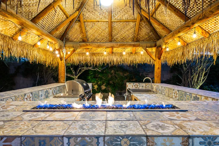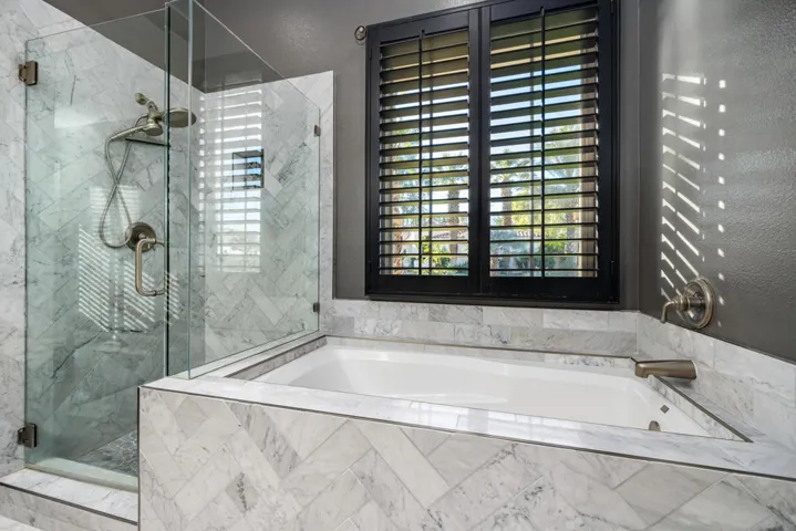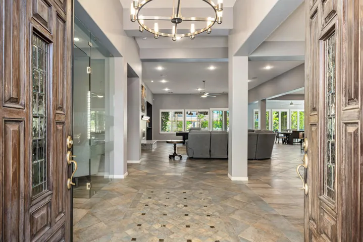 Located in Desert River Estates, a hidden gem on the border of La Quinta and Indio, this extensively upgraded residence sits on a generous half-acre corner lot and offers elevated indoor-outdoor desert living with a warm, inviting feel. Fully furnished and thoughtfully refreshed, the home spans 4,056 square feet and includes four bedrooms total (including the attached casita), a den, and three and a half baths. The casita offers both a private entrance and direct access to the main home, providing exceptional flexibility for guests or multigenerational living.The backyard feels like a private resort, featuring a saltwater pool and spa with newly updated equipment, elegant fountains, raised seating areas, a private outdoor sauna, and a newly added palapa roof over the outdoor kitchen. A large covered patio with custom misters, patio heaters, and an 85-inch motorized hideaway television creates the perfect setting for entertaining or relaxing, while a new handrail offers convenient access to the pool.Inside, soaring 12-foot ceilings and an open layout create a light and welcoming atmosphere. The expansive great room showcases custom built-ins, a fireplace, surround sound, and an adjacent game area ideal for gathering with family and friends. The remodeled kitchen features all-new Bosch appliances, a Samsung refrigerator, and multiple dining options including a breakfast area and formal dining room. A glass-enclosed office near the entry provides a stylish and functional workspace.The primary suite opens directly to the pool and yard and features a newly remodeled bath and an oversized walk-in closet. New flooring throughout all bedrooms and closets, interior shutters throughout the home, updated lighting and ceiling fans, two new air conditioners, an instant hot water heater, and a whole-home water softening and filtration system complete the extensive list of upgrades. Tasteful new furnishings have been added throughout the living spaces, primary suite, and casita, making this residence truly move-in ready.Whether entertaining on a grand scale or enjoying quiet desert evenings, this home offers comfort, style, and effortless living in one of the area’s most desirable yet understated communities.