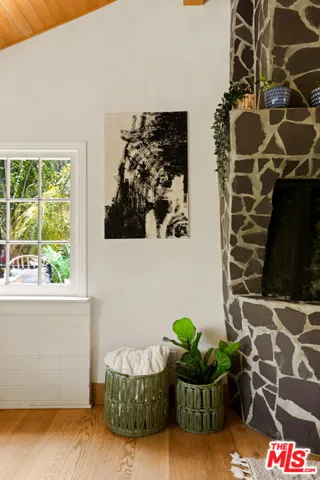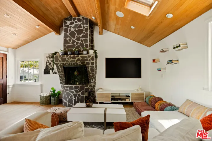 Set above the city in the desirable Hollywood Manor neighborhood, this updated Spanish style hideaway offers charm, privacy, and everyday ease with easy access to studios, hiking trails, and beloved Valley and Hollywood hot spots. A peaceful courtyard welcomes you with a calming fountain and a sense of retreat from the bustle below. Inside, warm wood floors and natural light create an inviting atmosphere. The main living space features dramatic wood-beamed ceilings, a stone fireplace, and a wall of windows framing beautiful hillside views. The kitchen balances form and function with stone countertops, custom cabinetry, and a breakfast bar that opens to the living and dining areas, ideal for casual meals or hosting. Just off the main level, a generous terrace invites al fresco dining or morning coffee in the sun. Downstairs, a versatile bedroom suite with private entrance and bath offers flexibility for rest, work-from-home, or creative use. Tucked into a quiet canyon, this home is minutes from Universal Studios, the Hollywood Bowl, the 101 Freeway, and the shops and restaurants of Studio City and Hollywood. A rare blend of character, comfort, and convenience. Come and see what pure peace looks like!