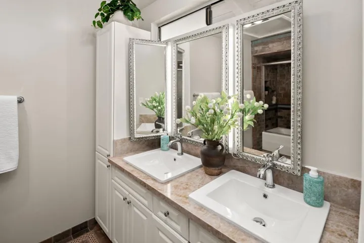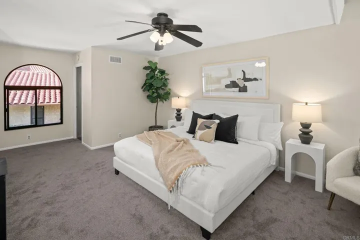Welcome to the serene and inviting Casitas De La Costa community, nestled in the heart of La Costa. This spacious two story, end-unit, loft-style home, thoughtfully designed and newly refreshed with new carpet, new paint throughout, new bathroom fixtures, new granite countertops and sinks in the baths and a walk-in closet. The kitchen boasts, recessed lighting, a new stove, freshly painted cabinets and a big stainless steel refrigerator. The oversized vaulted ceilings give the home an expansive feeling with gorgeous views looking east from the patio and picture window. This home has beautiful tile floors, a wood burning fireplace and exudes warmth and character. Enjoy the private patio or unwind in the community’s two pools, two spas, two saunas, and resort like feel with the sounds of the water features flowing throughout the community. The home has stackable washer and dryer, 1 gated assigned covered parking, underground parking for visitors and is a short drive to the ocean, state beaches, Batiquitos Lagoon and is very close to Omni La Costa Resort, for shopping, dining and golf. Stores, cinemas, restaurants and more are walkable, not to mention Carlsbad Schools are highly sought after. This home is a true retreat ready for it’s next homeowner!
