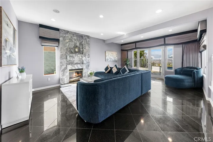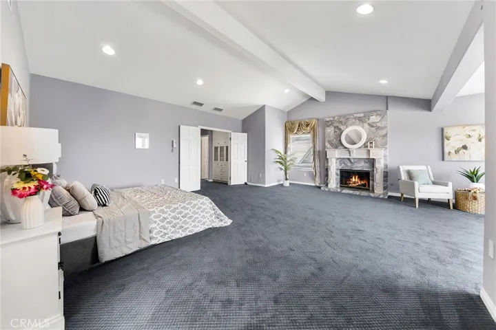 Upstairs, you’ll find three generously sized bedrooms, including a luxurious primary suite featuring a private balcony with spectacular sunset and city-light views. The suite also includes a cozy retreat with fireplace, two large walk-in closets, a spa-inspired en-suite bath with dual sinks, soaking tub, and separate shower, plus a unique hidden bonus room—perfect for storage treasure, a private retreat, or a creative space.