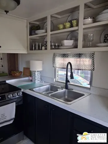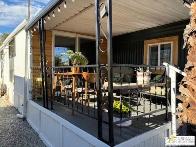 SPACIOUS AND INVITING HOME: Don’t let the exterior appearance fool you; this home offers plenty of space for entertaining both inside and outside. The dining room features a table that seats eight, along with additional furniture to accommodate guests comfortably. PEACEFUL NEIGHBORHOOD: Enjoy a tranquil setting with only two neighbors nearby. From the front porch, you can relax and watch golfers, dog walkers, and bicyclists pass by, making it a perfect spot to unwind and enjoy the surroundings. COMMUNITIES: Residents have access to a variety of amenities, including a pool, hot tub, shuffleboard court, library, and pool and ping pong tables. The friendly community regularly hosts clubhouse parties, providing opportunities to socialize and connect with neighbors. PRIME LOCATION: This home is ideally located near stores, restaurants, and downtown Palm Springs, Rancho Mirage, Palm Desert, the Airport and Metro Train Station and offering convenience and easy access to local attractions. PROPERTY DETAILS AND UPGRADES: Built in 1965, this Bonanza model measures 50 by 10 feet and includes three additions: a porch, living room, and a bonus room currently used as a second bedroom. The property has seen several recent upgrades:*Mini splits, water heater, flooring, lighting, and commode are four years old.*Stove, refrigerator, laminated countertop, and towel rack around the tub are two years old.*Bathroom sink, faucet, countertop, porch flooring, door, window, wood trim, and light fixture were updated one year ago.*The roof has just been coated, and the mini split system serviced. POTENTIAL IMPROVEMENTS: There is consideration for removing the cabinet in the dining room and replacing it with a buffet that could house a washer and dryer. 55+ senior community. Additional photos will be uploaded this week.