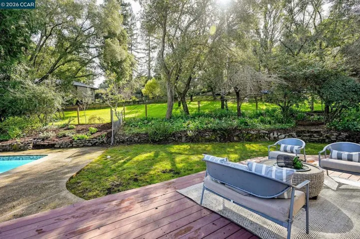 Spacious, well-maintained home set on an approx. 3/4 acre lot in Orinda’s Miner Road–Charles Hill neighborhood. This rarely available, mostly flat parcel offers expansive open space, a sparkling pool, rear deck, & plenty of room to gather, relax, or simply enjoy a private, serene setting. The home has been cared for by the same family for more than 50 years! It was recently refreshed w/ refinished hardwood floors, interior/exterior paint, & updated bathrooms. The main living areas include a large living room w/ fireplace, dining area, separate family room, & a kitchen with generous cabinetry. Three bedrooms offer ample closet space, including a primary bedroom with an ensuite bath. Large picture windows bring in natural light & views of the surrounding trees and grounds. An attached two-car garage connects to a spacious bonus room suitable for a gym, dance or art studio, a man-cave – or whatever you want it to be! Additional features include a presidential shingle roof (approx. 10 years old), central heating, & a ductless heating and cooling system in the family room for added efficiency. Offers by Thursday Feb 5th by 10 am