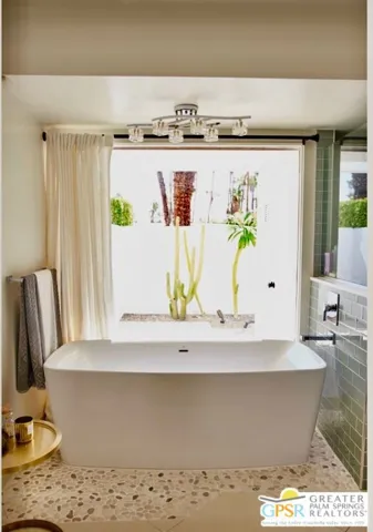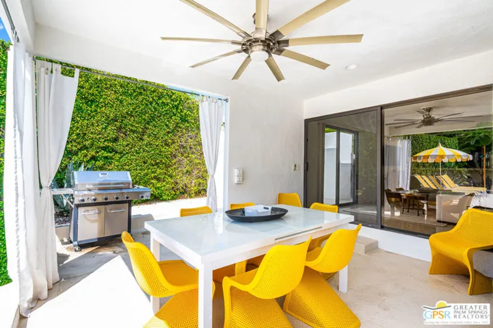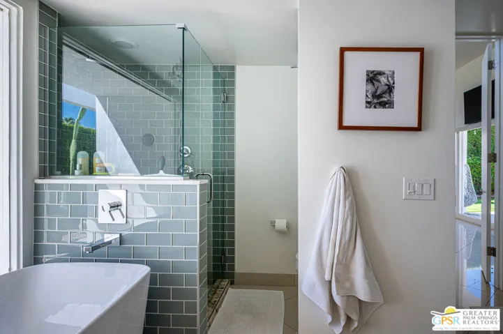 Prime Twin Palms Location | Contemporary Desert Living. Discover the perfect blend of style and sophistication in this stunning contemporary home, ideally located in the highly coveted Twin Palms neighborhood of Palm Springs. Step inside and be greeted by soaring ceilings, clerestory windows and walls of glass that flood the home with natural light while framing breathtaking San Jacinto Mountain views. The open-concept floor plan creates effortless flow between the living, dining, and outdoor spaces perfect for entertaining. The chef’s kitchen is beautifully updated and features premium appliances, a breakfast bar, and a casual dining area, complemented by a formal dining room for special occasions. The primary suite is a true retreat with panoramic mountain and pool views and a spa-inspired bath with soaking tub, and an expansive walk-in closet. The second ensuite bedroom includes a private patio for added privacy. The third bedroom has been converted to a media/den space but can easily be restored. Step outside to your private resort-style backyard, complete with a pool and spa, generous patio areas, and iconic Palm Springs views. Owned solar adds efficiency and value. This is the quintessential Palm Springs lifestyle at its best. Architectural design, modern upgrades, and a premier location.