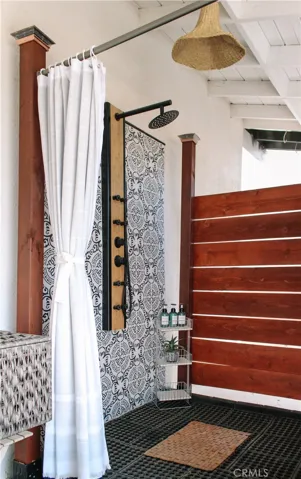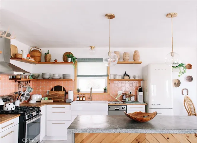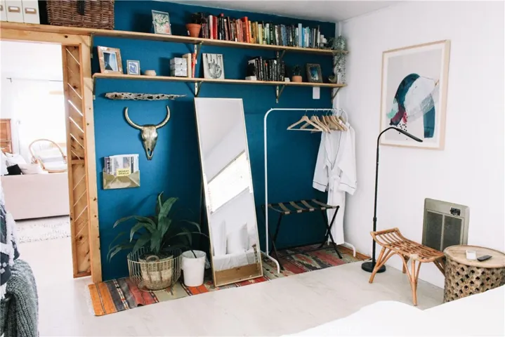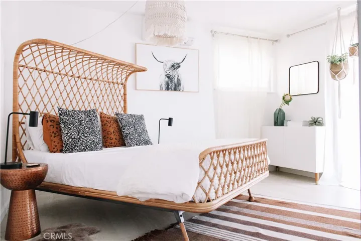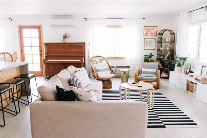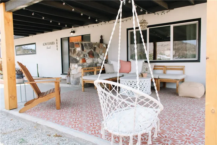 NEW ROOF & FASCIA being installed January 2026!! Insurance companies love to see that! Be taken away by the curated, one-of-a-kind “Aum-Hanaya Desert”. With its meaning of “willingness and courage to experience the unfamiliar in grace”, this house will truly take you to another desert dimension. 2 bed, 1 bath. Closer to the Joshua Tree National Park than the Visitor Center, this location is par none. Walking/biking distance to the Downtown Village area with local restaurants, bars, and shopping. Situated on the famous Park Blvd, the street leading into the National Park but based far back off the road with mature landscaping. The inside is completely remodeled with no expense spared.  A beloved, successful vacation rental, the home is beautifully appointed with a new kitchen, custom concrete waterfall island, designer finishes including light fixtures, fireclay tile, large farm sink, a spa-like bathroom with Delta fixtures, and many carefully curated furnishings. Additional improvements include all new windows, efficient ductless mini-split (AC/heat), and fresh paint. Watch the sunrise over the boulders out front, the sunset over the backyard, and the city lights twinkling to the North. The sliding glass doors lead out to the fully fenced-in private backyard with an outdoor shower, gazebo, and heated/cooled cowboy tub. Boasting an outdoor living space with an abundance of potential, already primed for stargazing and lounging.
