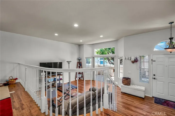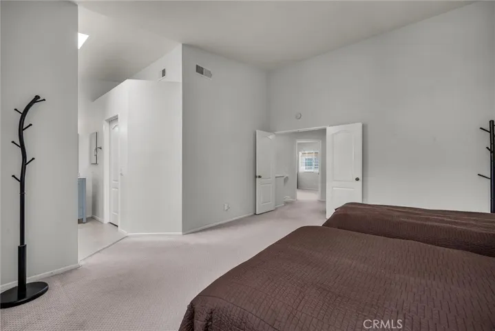 All bedrooms are located on the upper level. The expansive primary suite with high ceilings includes a walk-in closet and a remodeled en-suite bathroom with dual sinks, a soaking tub, and a separate walk-in shower stall. Two additional bedrooms and an updated full bathroom offer flexibility for family, guests, or a home office. Direct access to the attached two-car garage includes laundry and additional storage for everyday convenience.