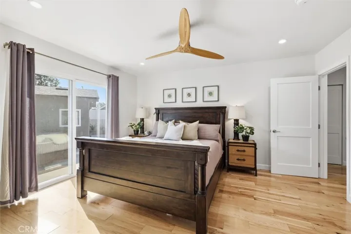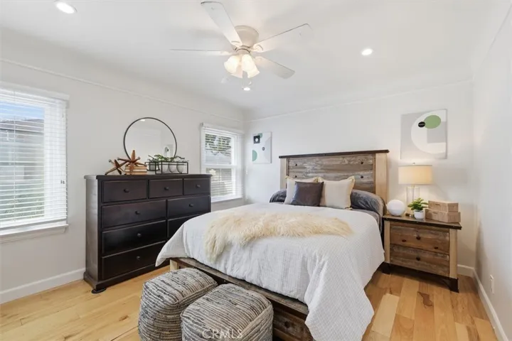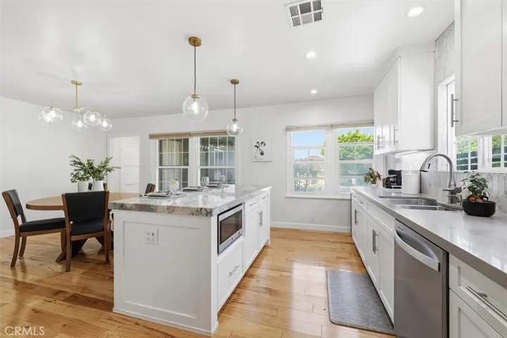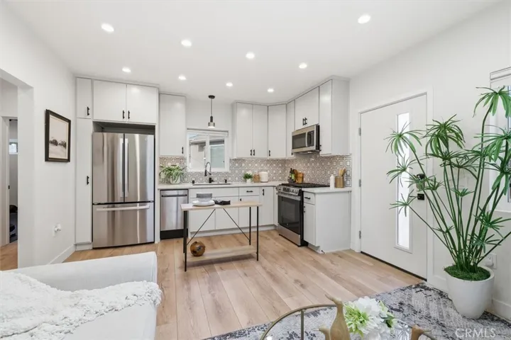 Nestled on a tree lined block in Inglewood’s Century Heights, this updated residence with a newly built detached two-bedroom ADU offers refined living with long term flexibility. Before moving in, the owner comprehensively rebuilt the main residence, addressing structure, systems, and finishes with a focus on durability and long term ownership rather than a cosmetic renovation. The main home features hickory hardwood floors, custom cabinetry, sound reducing triple pane windows, modern lighting, and central heating and air. Natural light and neutral finishes flow throughout, anchored by a living room with a built in fireplace and bay windows. The kitchen offers generous counter space, a center island with aqua quartzite, textured backsplash, and an adjacent dining area surrounded by windows. The primary suite includes sliding doors to the patio and a spa inspired bath with dual sinks, soaking tub, and separate shower. Two additional bedrooms, a guest bath, and a dedicated laundry room complete the layout. Recent system focused upgrades include replacement of the main water line, updated plumbing and electrical, roof resheeting and installation, and exterior restucco completed approximately nine years ago. The fully permitted ADU with no prior occupancy features an open living area, contemporary kitchen with quartz countertops and new appliances, vaulted ceilings, skylights, dedicated washer and dryer, multi zone mini split HVAC, and separate gas and electric meters. Outdoor spaces are secured by a gated entry and long driveway and include a private patio and lawn, along with a shared paved area with hot tub, above ground firepit, and storage shed. Conveniently located near major venues, beaches, shopping, LAX, and the 110, 105, and 405 freeways, this is a rare and compelling opportunity in Century Heights.