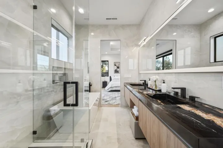 Experience stunning modern living in this architecturally impressive new construction in prime Willow Glen. With 2,825 sq ft of living space on a 7,150 sq ft lot size, this 4bed /3.5 bath home features clean contemporary lines, 10-ft ceilings, vertical picture windows, and wide-plank engineered hardwood floors throughout. Open-concept layout with expansive Milgard stackable sliding doors creates seamless indoor-outdoor living. Chefs kitchen showcases an oversized porcelain waterfall island, custom European cabinetry, and high-end Monogram appliances including a cabinet-paneled refrigerator. Bathrooms offer floating vanities with porcelain tops, sculpted Italian stone sinks, Italian large-format tile floor-to-ceiling, and Grohe/Isenberg fixtures with built-in Toto washlet toilets. Luxurious primary retreat includes abundant natural light, walk-in closet, and backyard access. Finished 230 sq ft basement ideal for office/gym/wine room/studio. Additional highlights: solid-core interior doors, custom fiberglass double entry doors, high-end window shades, surround sound, smart dimmers, whole house water filtration/softener, low-maintenance landscaping, and outdoor kitchen hookups. Walk to top Willow Glen schools & downtown. Main level is 2595 sqft, finished basement is 230sqft.