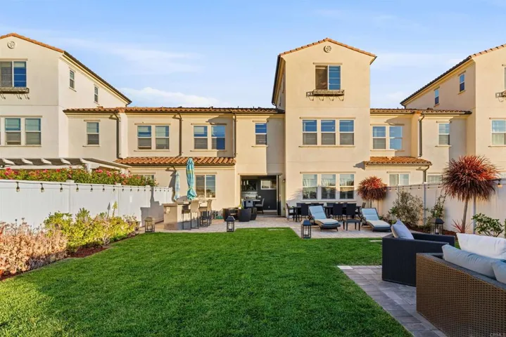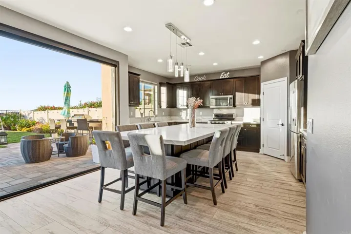Exceptional 5 bedroom residence plus a third-floor loft located in the highly sought-after gated Veridian community of Black Mountain Ranch/Del Sur. Built in 2017, this beautifully designed home offers spacious, modern living with thoughtful upgrades and abundant storage throughout, including a convenient bedroom on the main level, ideal for guests, multi-generational living, or a home office. The open-concept main level showcases a chef’s dream kitchen featuring espresso cabinetry, sleek white and grey finishes, and an oversized island that comfortably seats eight, ideal for entertaining and everyday living. The contemporary color palette of crisp whites and soft greys creates a bright, modern aesthetic throughout the home. An upgraded French door opens effortlessly to the outdoors, creating seamless indoor/outdoor living and filling the home with natural light, perfectly setting the stage for the incredible backyard that follows. Step outside to a huge, professionally designed backyard featuring a built-in BBQ island, fire pit, outdoor dining area, and breathtaking panoramic canyon, mountain , and partial ocean views, an entertainer’s paradise and the perfect setting for relaxing or hosting gatherings. Upstairs, the primary suite is a true retreat, offering generous space, abundant natural light, and a luxurious, spa-inspired bathroom. The suite is complemented by a custom walk-in closet, designed with magazine-worthy detail and finished with a stylish barn door, providing exceptional organization and storage. Additional upstairs bedrooms are well-sized and thoughtfully laid out. The third-floor loft adds a versatile bonus space, perfect for a media room, gym, playroom, or private escape. A dedicated laundry room with sink and built-in storage adds everyday convenience. Additional highlights include a 2-car garage with overhead storage and ample storage solutions throughout the home. Located in a vibrant master-planned community with resort-style amenities, parks, trails, and access to the top-rated Poway Unified School District. This home seamlessly blends luxury, functionality, and exceptional indoor/outdoor living in one of North County San Diego’s most desirable neighborhoods.