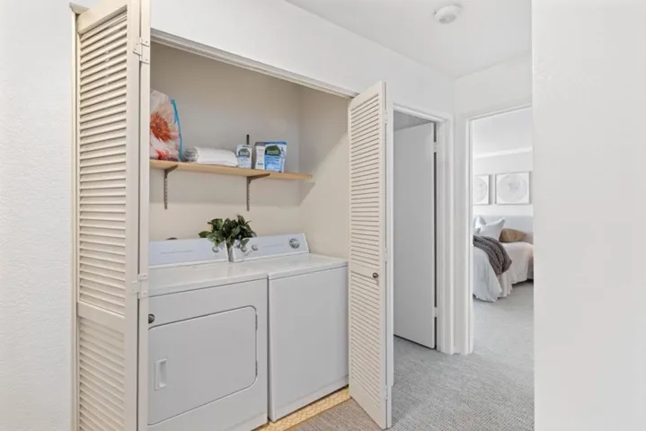 Serene Greenbelt Views & Spacious Living…Your Canvas Awaits! Discover true tranquility with this rare-opportunity property, offering serene greenbelt views and a spacious, light-filled environment that instantly feels like home. The second-floor, 2-bedroom, 2-bathroom gem spans over 1,300 sq. ft. and features a flowing, airy layout that evokes the comfort and privacy of a single-family dwelling. A large wrap-around balcony seamlessly extends your living space into the surrounding nature, perfect for quiet mornings or evening relaxation. The living area is centered on a cozy fireplace, complemented by a separate dining area ideal for entertaining. A generously sized eat-in kitchen area is designed for flexible configurations tailored to your needs. Recently refreshed with new carpet throughout, this unit is move-in ready. It provides a perfect canvas for you to update and customize the charming, classic late-80s character to your own taste. This is a unique blend of a peaceful setting, an expansive living area, and the potential for personalization. Don’t miss this exceptional chance to create your dream home. Schedule your private tour today!