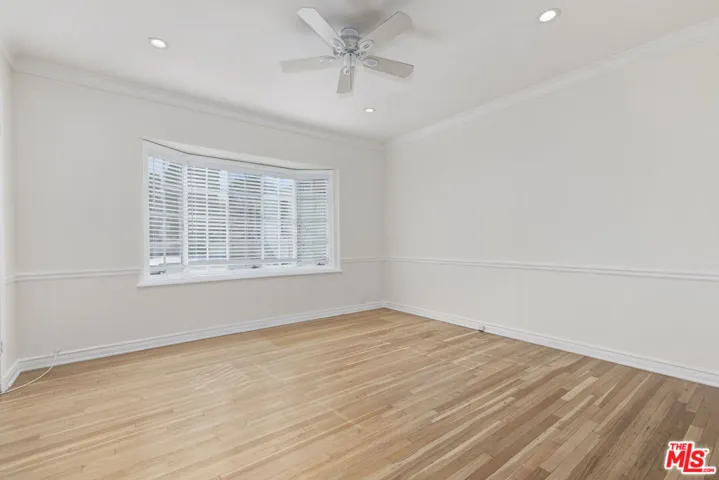 Renovated 2nd floor corner residence overlooking Roxbury Park, located in a classic boutique Beverly Hills apartment building. This exceptional unit strikes a thoughtful balance between modern upgrades and preserved 1930’s European character. The expansive living room is filled with natural light and features a decorative fireplace, built-in bookshelves, and a convenient TV-mount setup, all framed by an abundance of windows. The renovated kitchen is both stylish and functional, offering stainless steel appliances, quartz countertops, subway-tile backsplash, tiled flooring, generous cabinetry, and a large window with serene park and treetop views. A rear entrance provides easy access, and side-by-side in-unit laundry is conveniently located just off the kitchen. The bright and airy primary bedroom features corner windows with peaceful park and treetop outlooks. The spacious second bedroom is highlighted by a charming bay window. The oversized bathroom offers a separate soaking tub and large walk-in shower, a linen closet, elegant tilework, and additional park views. Throughout the unit, classic architectural details shine, including detailed crown moldings and beautiful hardwood floors, complemented by modern amenities such as forced-air AC and heat, recessed lighting with dimmers, and abundant closet space and storage, including a two large hall closets. The gorgeous building offers a sparkling pool, lush gardens, inviting outdoor spaces, and a striking stairwell that reflects its original charm. Ideally situated next to Roxbury Park and just moments from Beverly Hills High School, this central location places you in Beverly Hills while offering effortless access to Century City and the Westside. One covered carport parking space included. Approximately 1,100 square feet. A rare opportunity to lease a refined residence in Beverly Hills.