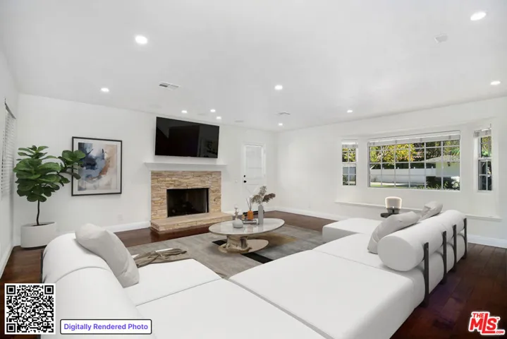 Immaculate gated home for lease located in Woodland Hills featuring 4-bedrooms and 4-bathrooms. A beautifully landscaped entry leads into a luminous and spacious home with beautiful hardwood flooring, baseboard molding, intricate ceilings, and recessed lighting. The living room enjoys a beamed ceiling, a fireplace, bay window with seating and tons of natural light! The kitchen has stone countertops, a tile backsplash, stainless-steel appliances, and a breakfast nook area with French doors that lead outside. This home includes a large family room with a fireplace, a laundry room and spacious bedrooms with walk-in closets and access to the side/backyard. Plus, the 4th bedroom off the primary bedroom can be used as an office, nursery, gym, or a sitting room. Entertain guests in the spacious backyard with a covered patio and a lush green lawn surrounded by trees and plants, great for outdoor seating with tons of privacy! Welcome to your new home!