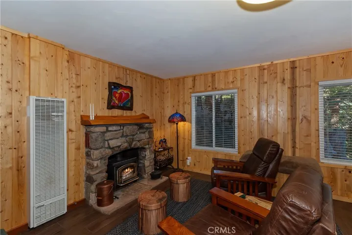 Tucked into a peaceful wooded setting yet moments from the quaint town of Cedar Glen offering restaurants, shops, hardware store, Cedar Glen Fine Foods market, post office and more. Definitely the best combination of privacy and convenince!!! Level parking, level entry! Level to front door. Beautifully polished pine tongue & groove throughout. New Porcelain tile wood-look flooring. Dual pane windows with window treatments. Beautiful stone fireplace with insert will keep you toasty on those chilly winter nights. Additional wall heater in living room. Light airy kitchen upgraded with new granite counters and subway tile backsplash. Original wood cabinetry and breakfast bar add to the charm. Upgraded bathroom. Separate storage/laundry room w/washer & dryer. 2 bedrooms upstairs each with separate AC splits for year-round comfort. Concrete driveway makes access easy. No stairs trex-type deck/ Additional picnic area with stone table and benches. Move-in ready, furnished. Pride of ownership and it shows.