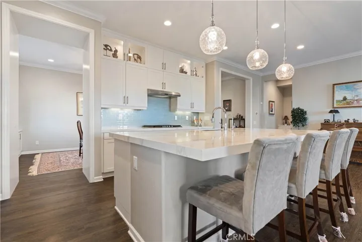 Excellent single level VIEW-HOME located in the exclusive gated community of ALIENTO. 3 bedrooms with option for a 4th bedroom, 2.5 baths, the 2 front bedrooms share a jack & jill bathroom with a walk-in shower. The open floor plan connects the living/dining/kitchen areas. Also has high ceilings, fireplace, quartz counter tops, crown molding throughout, upgraded bathrooms, back patio has tile flooring and artificial grass for low maintennance. Community Amenities: clubhouse, gym, lap and kids’ pools, spa, dog park, bocce ball court, private parks, and hiking trails. Less than 2 miles from the 14 freeway with NO noise, and 5 miles from the 5 freeway access. Conveniently located minutes from Trader Joe’s, Costco, Target, top schools, dining, and more. Don’t miss a chance to live in this gated community.