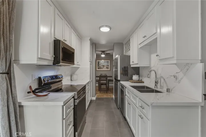 Prime ground-level unit in the desirable Rossmoor Park community! This beautifully upgraded 2 bed / 2 bath single-story condo features a sleek, modern kitchen with quartz countertops, soft-close shaker cabinetry, stainless steel appliances, and a clean marble-look backsplash. Stylish tile flooring flows throughout the kitchen and living areas, while both bathrooms have been tastefully renovated with contemporary finishes. The spacious living room opens to a private patio, perfect for relaxing or entertaining. Ideally located just steps from parking and one of two community pools. Rossmoor Park is a gated community offering resort-style amenities including two pools, a spa, gym, clubhouse, BBQ area, car wash station, and on-site management. Adjacent to The Shops at Rossmoor, dining, and parks. Part of the award-winning Los Alamitos Unified School District and with easy access to the 405, 22, and 605 freeways. Enjoy the best of Seal Beach living—bike to the beach, walk to shopping, and feel right at home!