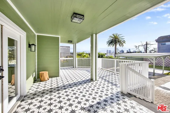 Welcome home to a residence designed for both style and comfort. The journey begins with a large front yard area and a dedicated walkway leading to the entrance, complemented by a charming covered front porch. Inside, you’ll find a home that has been upgraded with modern, stylish fixtures. The main living area is perfect for relaxation or hosting, featuring recessed lighting and integrated speakers throughout the ceiling in each room. To ensure your comfort regardless of the season, the house is equipped with two separate HVAC zones, allowing you to control the climate of the first and second floors independently. The heart of the home is a fully equipped kitchen, boasting elegant White Shaker cabinets and premium stainless-steel appliances. An island provides a sleek transition from the kitchen to the dining area. Both of these spaces feature French doors that open onto a large outdoor deck, creating a seamless indoor-outdoor flow. For your convenience, the home also includes a large laundry room complete with built-in cabinets and additional storage area. The outdoor amenities are truly the crown jewel of this property. A massive covered patio area is large enough to host dozens of guests while providing a spectacular view of Downtown LA. Beyond the patio, the huge backyard offers plenty of space for recreational sports or simply soaking in the lovely LA weather. Additionally, the property provides the convenience of covered parking for two cars. All bedrooms are situated on the second floor to ensure a peaceful environment. The primary bedroom is particularly spacious, offering a private balcony and a large walk-in closet. The spa-like experience continues in the bathroom, where you can let your worries fade away under a luxurious waterfall shower equipped with a high-end steam system, designed for ultimate relaxation. Two additional bedrooms are connected by a shared balcony, which also offers spectacular views.