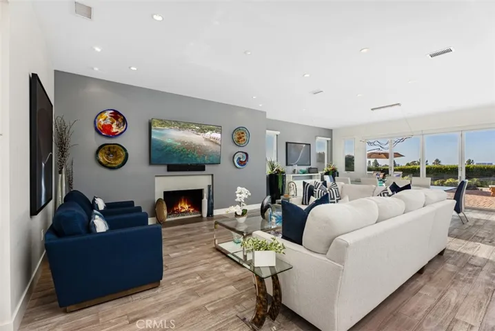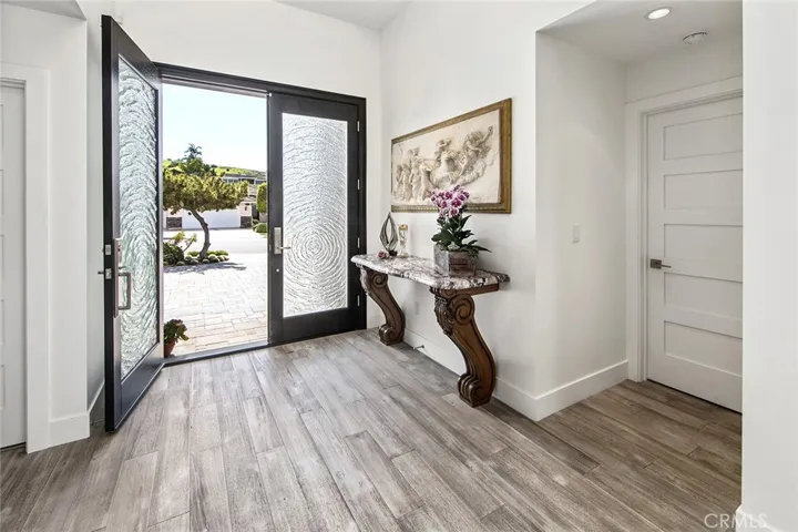Welcome to an extraordinary custom single level modern masterpiece, perched in the coveted hills of Turtle Rock. This one-of-a-kind residence boasts gorgeous sunsets and unobstructed panoramic views, capturing the beauty of rolling hills and city lights, and even Disneyland fireworks. Radiating contemporary elegance, no detail has been overlooked in its impeccable craftsmanship designed for effortless easy-care and seamless indoor/outdoor living.This exceptionally private architectural gem was custom built in 2017, with nearly $800,000 invested at the time to elevate it to an unparalleled level of modern refinement. The moment you step inside, an awe-inspiring sense of openness greets you, as dramatic 16’ wide by 8’ high La Cantina doors dissolve the boundary between indoors and out. Additional strategically placed windows frame the stunning vistas, bathing the interiors in an abundance of natural light. At the heart of this home is an expansive great room, where soaring ceilings create an airy and inviting atmosphere. A luxurious family lounge features a sleek 75” Samsung TV, a striking contemporary fireplace, and a built-in entertaining bar complete with a wine refrigerator. The adjacent dining area is defined by a dazzling statement chandelier, setting the stage for unforgettable dinner parties against the backdrop of mesmerizing twilight views. The designer kitchen offers a stunning 14-foot-long waterfall-edge island is complemented by high-gloss white cabinetry and top-of-the-line KitchenAid appliances and sleek clean lines make this kitchen as beautiful as it is practical.The primary suite includes a private office/sitting area. The ensuite spa-inspired bathroom features floating vanities, designer lighting, and extensive use of Carrara marble-inspired finishes.A secondary en-suite bedroom continues the theme of refined modernity, with its own impeccable design and high-end finishes. Even the guest bath exudes elegance and a commitment to luxury. Revel in the resort-inspired backyard, where the expansive patio invite relaxation and entertainment alike and a sparkling pool and spa provide a serene oasis. Enjoy the seamless fusion of contemporary luxury with the great outdoors, state-of-the-art technology and awe-inspiring views. Award winning Turtle Rock Elementary & University High School are steps away. Exceptional nearby community facilities.