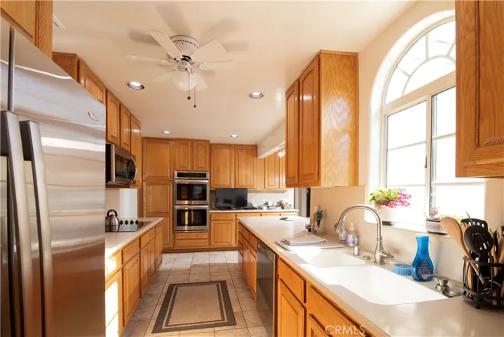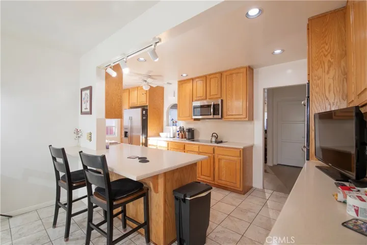 Lease, this 4-bedroom, 2-bathroom single-family residence featuring a spacious living room with light wood flooring throughout, a cozy fireplace, and ample natural light, creating a warm and inviting atmosphere ideal for everyday living and entertaining. Spacious galley-style kitchen featuring ample wood cabinetry offering generous storage, sleek light-colored countertops, and tile flooring. The kitchen is equipped with a full appliance package including refrigerator, microwave, and range. Functional layout with extended counter space, ideal for meal prep and everyday use. Bright and airy with natural light, neutral finishes, and a clean well-maintained appearance. Convenient indoor laundry. Nicely size bedrooms. Updated bathrooms, well maintained space. Spacious backyard featuring a covered patio ideal for outdoor dining and entertaining. Detached garage currently utilized as a studio, offering flexible use for workspace, hobbies, or storage. Mature fruit trees enhance the outdoors space and provide pleasant, private setting. Property includes RV driveway parking and a functional layout offering flexibility and comfort.