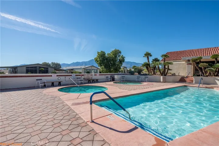 Resort-Style Living You Own in a Premier 55+ Community! Welcome to this exceptional opportunity to enjoy comfort, convenience, and true homeownership in a sought-after 55+ community—on a permanent foundation and fee land, meaning you own the land! This beautifully designed home offers an ideal blend of easy living and resort-style amenities in a vibrant, active setting. Step inside to an open-concept floor plan filled with natural light, highlighted by wood-like flooring and soaring ceilings in the living room that create an airy and inviting atmosphere. The bedrooms include shed-style ceilings, adding to the home’s comfortable feel. Just off the kitchen, a flexible dining area provides the perfect spot for a breakfast nook or casual meals. Galley-style kitchen is both functional and spacious, offering an abundance of counter and storage space along with a center island ideal for meal prep and entertaining. A den located off the main living area serves as a perfect flex space—ideal for a home office, study, library, or hobby room. The spacious primary suite is a true retreat, with a bay window, large walk-in closet, and an ensuite bath featuring a separate shower and jetted tub, perfect for unwinding. A dedicated laundry room features a side-by-side washer and dryer, a service sink, and plenty of additional storage. From the living section access the yard, featuring a wraparound deck and pergola, ideal for your patio set. Additional highlights include dual-pane windows, central HVAC, and a 2-car attached garage for everyday convenience. Enjoy a vacation-like lifestyle with access to an impressive array of community amenities, including a sparkling pool and spas, shuffleboard courts, a large community room for private and social events, billiards and card rooms, a fully equipped gym, sauna, and more. Appliances are included—refrigerator, stove, washer, dryer, built-in microwave, and dishwasher—making this home truly move-in ready. Minutes to the Desert Hot Springs Town Center where you can enjoy dining, shopping at Vons or Walgreens, or grab a cup of coffee or tea at Starbuck. Experience the best of Desert Hot Springs living with comfort, ownership, and an active lifestyle all in one. Schedule your private showing today!