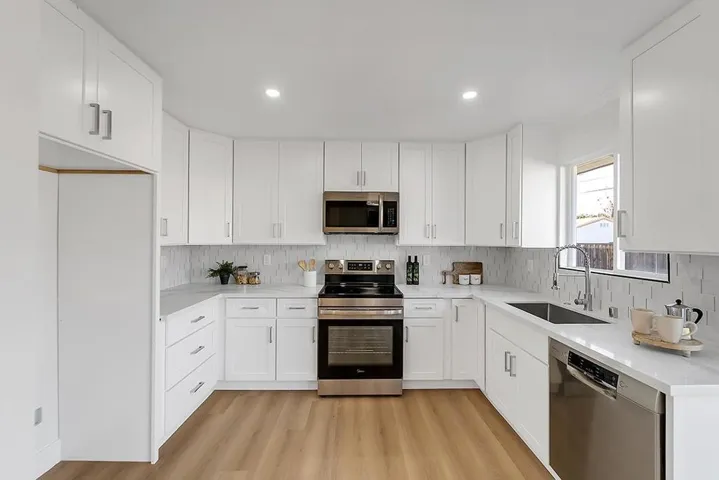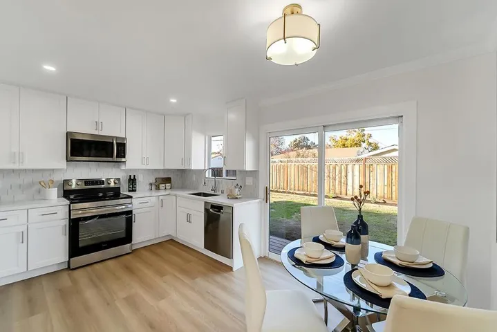 Step into this beautifully remodeled 3-bed, 2-bath home where modern comfort meets timeless style. As you enter, you are welcomed by a bright, spacious living room filled with natural light. The brand-new kitchen features sleek white cabinetry, stainless-steel appliances, and a contemporary design that flows seamlessly into the open-concept living and dining areas, perfect for hosting family and friends. Sliding glass doors lead to a spacious backyard with a concrete patio, ideal for outdoor relaxation and entertaining. Every corner of this home has been thoughtfully upgraded: beautifully remodeled bathrooms with a sleek, modern design, new electrical and plumbing systems, recessed lighting, luxury vinyl flooring, new windows and doors, smooth wall finishes, and fresh landscaping with new sod and plants. Located just minutes from major shopping centers, top tech employers, parks, and freeways (880, 680, and 237). Tesla Superchargers are also conveniently nearby. As an added bonus, you will have access to top-rated Milpitas schools. This is one you will not want to miss!