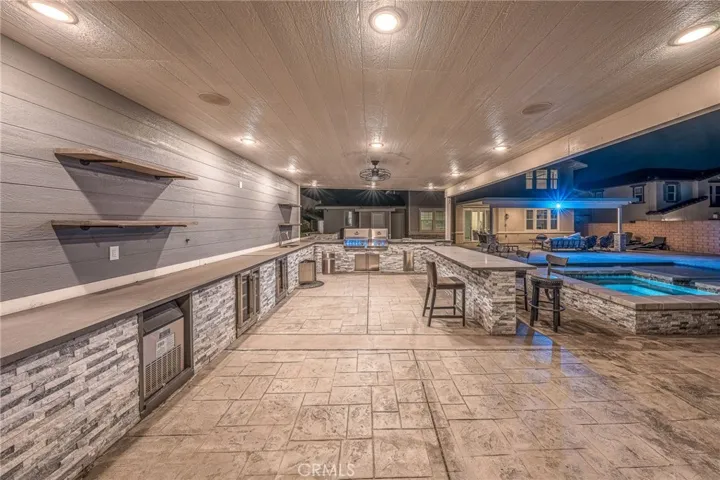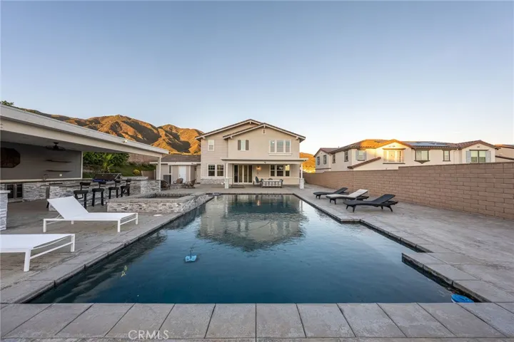 Step outside into your own private oasis. The backyard is absolutely gorgeous, framed by breathtaking mountain views that serve as the perfect backdrop for the custom pool and spa. Designed for the ultimate host, the outdoor space features a full outdoor kitchen and—most uniquely—a dedicated outdoor bathroom with a shower area. This thoughtful addition ensures seamless hosting and keeps the flow of pool-day traffic strictly outdoors.
