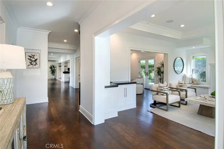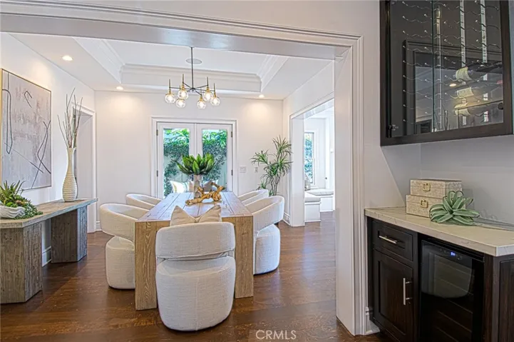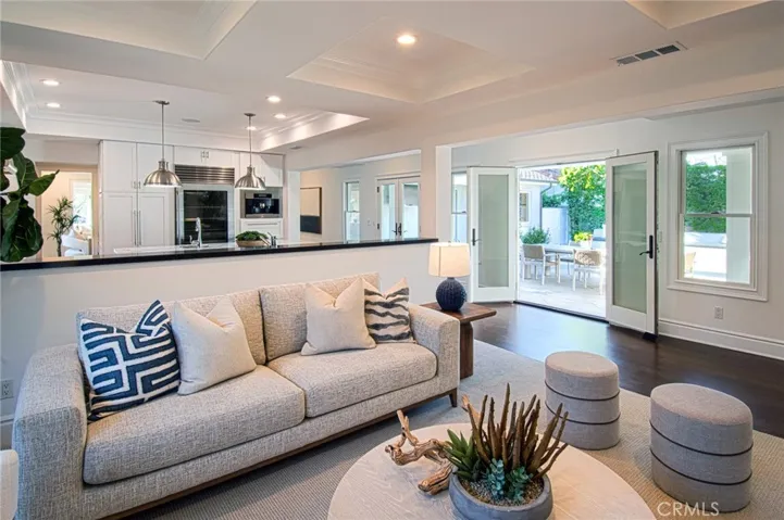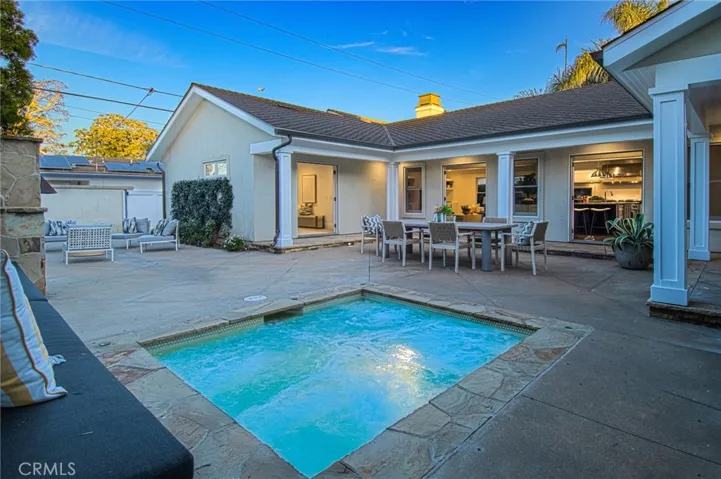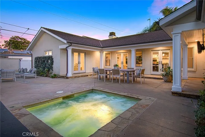 This captivating single-story contemporary home is impeccably designed and richly appointed throughout. A welcoming front courtyard sets the tone with a tranquil water feature, gas fire pit, and meticulously curated landscaping. Designed for both everyday living and effortless entertaining, the gourmet kitchen is outfitted with top-of-the-line stainless steel appliances, including a six-burner Thermador range, Thermador refrigerator, and a built-in Miele espresso machine. Granite countertops and an expansive marble center island—complete with an additional dishwasher, prep faucet, and pull-out refrigerator—anchor the space. The kitchen flows seamlessly into a butler’s pantry with a wine refrigerator, connecting to a refined dining area and an elegant living room featuring coffered ceilings, with a gas fireplace, and a state-of-the-art entertainment sound system. Throughout the home, notable appointments include coffered ceilings, beautiful newly refinished maple hardwood floors, crown moldings, custom built-in cabinetry, recessed lighting, and with an abundance of natural light streaming through numerous windows and glass doors. French doors open to a spacious, private outdoor entertaining retreat highlighted by a spa with water feature, a custom pizza oven, and a built-in grill—perfect for outdoor gatherings. The luxurious primary suite offers a walk-in closet, fireplace, and a beautifully remodeled spa-inspired bathroom featuring a pedestal soaking tub, modern bidet, and a large walk-in steam shower. The secondary bedrooms are spacious, offer ample closet space and recently upgraded bathrooms. A bedroom with separate exterior access and adjacent to the garage could be used as an office, gym, or perfect for interim guests. Other noteworthy elements of the property include a bocce ball court, rear access that affords storage of additional vehicles, as well as fresh interior and exterior paint. Ideally located near the shops and restaurants of 17th Street, Mariner’s Park and award-winning Mariners Elementary School, this exceptional home combines refined design with an unbeatable location.