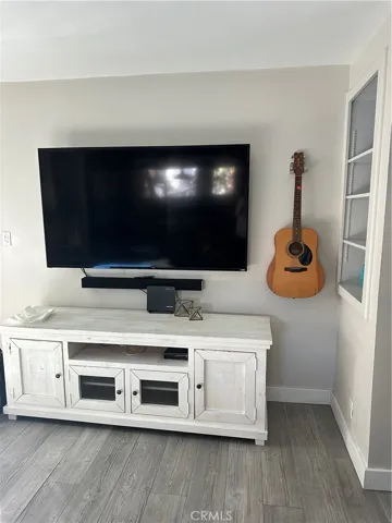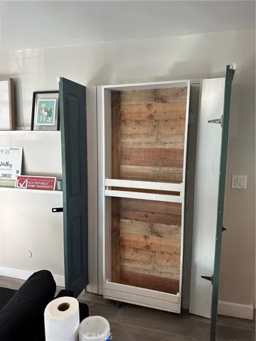 The living room and dining area offers a five foot dining table, a spacious closet and a one of a kind built in bar. The sofa converts into a guest bed and a television is provided. The bed is in an enclosed area which includes a queen size bed and an upgraded bathroom. A hidden storage door allows for efficient airflow from the air conditioning and heating system.