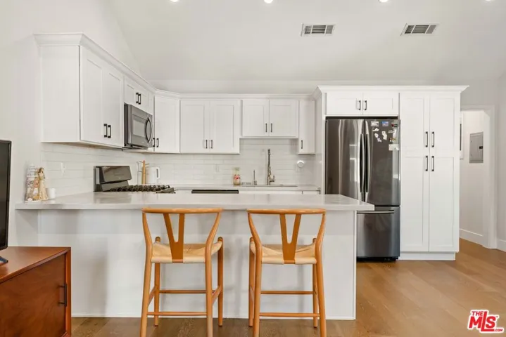 This beautifully renovated single story farmhouse is located in the heart of Colfax Meadows, one of Studio City’s most desirable neighborhoods, and is zoned for both Carpenter Avenue Elementary and Colfax Elementary Charter. A thoughtfully designed layout creates an open living area filled with natural light and a comfortable, inviting feel. The kitchen is modern and functional, featuring a stone island, pantry wall, updated appliances, and a dining area that works just as well for casual meals as it does for entertaining. Two en suite bedrooms sit at the front of the home, while the primary suite is tucked away at the rear, offering a quiet and private retreat. A conveniently placed powder room sits near the main living space. A major highlight of the property is the fully permitted backyard ADU, complete with its own kitchen, bathroom, and bedroom. This flexible space is ideal for guests, a home office, or potential rental income. Additional features include plantation shutters, a dedicated laundry room, ample storage, low maintenance artificial turf with an automatic drip system, and a tankless water heater. Set just minutes from popular restaurants, shops, and everyday conveniences, this Colfax Meadows home offers comfort, flexibility, and exceptional value in a prime Studio City location.