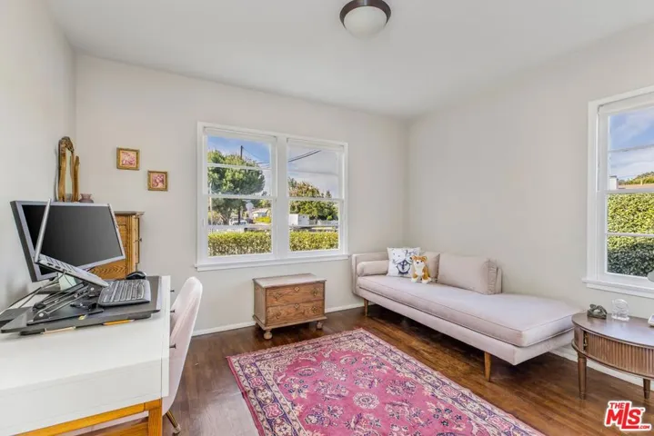 Welcome to 6050 Allott Avenue, a single-story retreat set on an expansive corner lot within one of the most charming pockets of Valley Glen. Offering three bedrooms and one bathroom, this light-filled home seamlessly blends comfort and functionality, highlighted by an oversized backyard and a detached garage with exceptional ADU potential. Inside, rich hardwood floors and a cozy gas fireplace anchor the inviting living room, which transitions effortlessly into the formal dining area framed by large glass windows and doors that open to the backyard. The adjacent kitchen is well-appointed with stainless steel appliances and generous cabinetry. All three bedrooms are thoughtfully positioned along the main hallway, each offering ample closet space and sharing a well-maintained bathroom with a bathtub and step-in shower. Outdoors, a covered patio, multiple seating areas, and beautifully landscaped grounds create a serene setting ideal for entertaining or simply enjoying the California lifestyle. Additional features include a dedicated laundry room off the kitchen with washer and dryer, a security system, and a detached garage with separate access from Bessemer Street, perfectly suited for a future ADU. Conveniently located moments from NOHO West, Valley Glen Community Park, Los Angeles Valley College, and the Good Times Farmers Market, this home offers an exceptional balance of tranquility and accessibility.