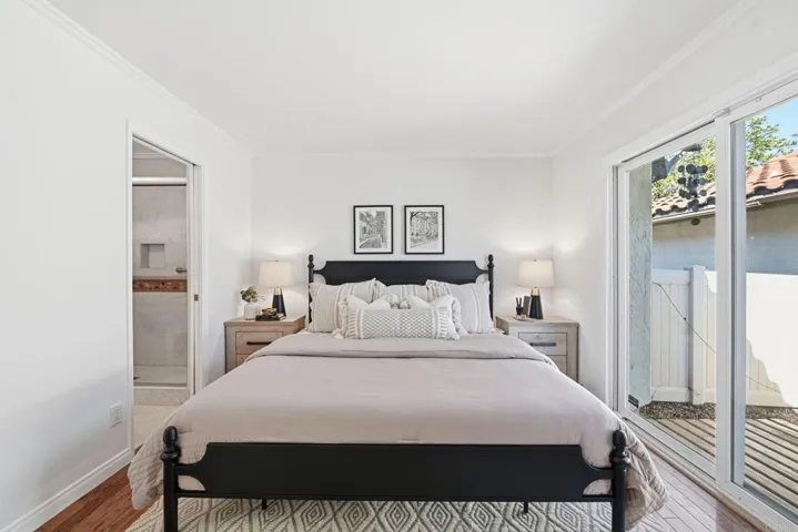 Welcome to this highly desirable end-unit home in the sought-after 55+ community of High Country Villas, perfectly positioned along the community’s signature 9-hole golf course. This light-filled residence features newer paint throughout and an open, airy floor plan designed for comfortable living and effortless entertaining. The remodeled kitchen is beautifully appointed with stainless steel appliances and flows seamlessly into the spacious living and dining areas. A versatile den or optional third bedroom is ideal for a home office or guest space. Both bedrooms offer generous walk-in closets. The spacious primary suite is a true retreat, featuring elegant brass fixtures, beautiful cabinetry with granite countertops, a walk-in shower with decorative travertine tile and corner bench, a pocket door, and a large walk-in closet. Enjoy coastal breezes from the covered patio off the living and dining areas or unwind on the private patio directly off the primary bedroom. Additional highlights include a one-car detached garage plus a designated parking space conveniently located adjacent to the garage. High Country Villas offers an outstanding lifestyle with community pool and spa, pickleball courts, a well-appointed clubhouse, a 9-hole golf course, and a wide array of activities including bocce ball, shuffleboard, horseshoes, yoga, bridge, happy hours, movie nights, and more. Scenic hiking trails are just next door at Manchester Preserve. Ideally located near shopping & dining, with a near-perfect climate year around and just 10 minutes to beautiful coastal beaches, this home truly has it all. This exceptional property will not disappoint.