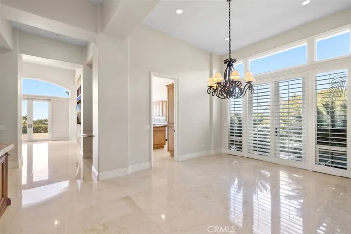 Rarely offered yet highly sought after, this recently renovated, main floor master floor plan boasts beautiful ocean & harbor views from nearly every room. Perfectly situated on a unique corner lot offering a long driveway, the home presents impressive curb appeal. Upon entering, the grand foyer welcomes you with vaulted ceilings and an abundance of natural light flooding every corner of this open concept floor plan. An oversized main floor master suite, features lay-down ocean & harbor views, as well as his + her closets . Immediate proximity to the Pelican Hill Resort, world class shopping at Fashion Island, and the finest public/private schools complete this dream home.
