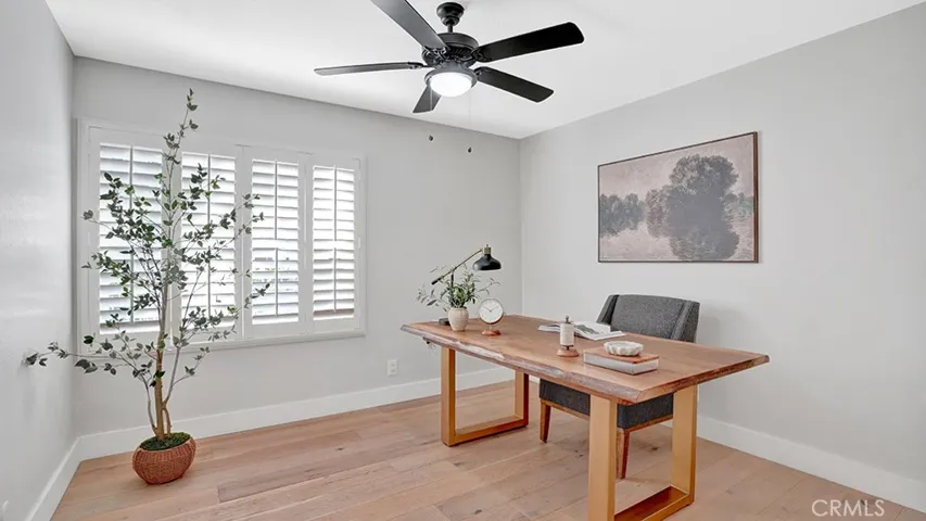 Recent upgrades ensure comfort and peace of mind, including a new Goodman 4-ton condenser and furnace. Enjoy indoor-outdoor living with a private yard featuring fresh sod and seating spaces, ideal for relaxing or entertaining. Experience seamless, high-speed connectivity with Ethernet cabling pre-wired through the kitchen, bedrooms, living room, and den. Peak-a-boo view of Saddleback Mountain with potential to expand the view. Return daily to the calming sanctuary of the long-established garden and magnificent olive tree. Benefit from an assumable solar agreement that provides lower energy costs.