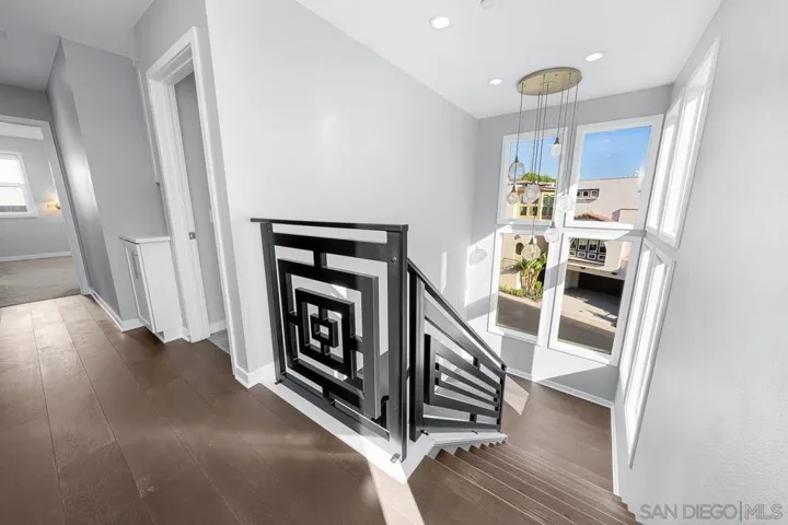 Welcome to this stunning end-unit residence at Apex, the pinnacle of Civita, offering expansive southern views over Mission Valley and a thoughtfully designed, multi-level floor plan filled with natural light. Upon entry, you are greeted by a unique split-level layout with stairs leading both up and down. The lower level features a versatile bonus room that can serve as an optional fourth bedroom, media room, or home office, along with a full bathroom, making it ideal for guests or flexible living arrangements. This level provides direct access to your private enclosed patio, a great space for outdoor entertaining! Also a conveniently attached two-car garage, and a driveway that allows parking for two additional vehicles, a rare and valuable luxury within the community. The main living level is designed for both everyday comfort and entertaining. A striking modern kitchen anchors the space, complete with top-of-the-line appliances, a smart refrigerator, custom leather cabinetry, and designer kitchen and dining room pendants that are sure to impress. The kitchen opens seamlessly to a spacious living room, alongside an open and airy study area. Step outside to the balcony to enjoy unobstructed palm tree views and Southern California sunshine. A convenient half bath completes this level. The home is thoughtfully appointed with a smart intercom system and subtle chandelier accents that complement the modern interior. The upper level offers a private retreat with all three bedrooms thoughtfully positioned for comfort and privacy. The primary suite features a pristine, modern bathroom showcasing a soaking tub set within a generously sized shower, dual vanities, and a large walk-in closet. Two additional bedrooms are located on this level, along with a detached full bath and a dedicated laundry room. Located within the award-winning Civita community, residents enjoy access to resort-style amenities including multiple pools, a state-of-the-art fitness center, parks, walking trails, a dog park, and breathtaking hillside and valley views. Civita is known for its modern architecture, vibrant atmosphere, and thoughtfully planned outdoor spaces that encourage both relaxation and community. Perfectly positioned in Mission Valley, this home offers one of San Diego’s most central locations with easy access to the 8, 163, 805, 15, and 5 freeways. Shopping, dining, and everyday conveniences are just minutes away, including Costco, Ralphs, Fashion Valley Mall, L.A. Fitness, Trader Joe’s, and more. Enjoy quick access to Mission Bay, San Diego’s beaches, and everything the city has to offer. This end-unit home combines elevated design, exceptional community amenities, and an unbeatable central location for truly modern and luxurious San Diego living.
