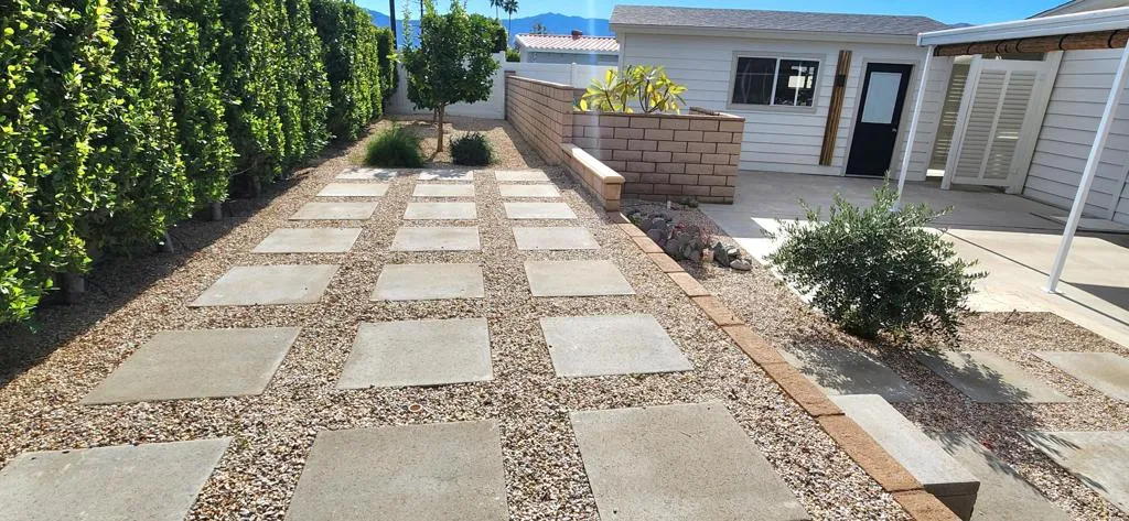 This tastefully remodeled home boasts a wide range of energy-saving improvements, including a paid-off solar system, EV charging station, newer roof, A/C and furnace, ceiling fans throughout, and dual-pane windows all designed to lower utility costs. The spacious layout features a centrally located kitchen with newer stainless-steel appliances, a walk-in pantry, quartz countertops, and ample cabinetry. Adjacent is a spacious family room with a custom bar area, perfect for daily living or entertaining guests. Recent renovations include stylish interior and exterior doors, plus fresh paint. The primary suite offers a walk-in closet and French doors to a private patio. Both bathrooms have been updated for comfort and modern appeal. The large golf cart garage includes storage and a work bench, offering a dedicated space for hobbies and projects. Located in Palm Desert Greens, a highly desirable 55+ community, residents enjoy numerous amenities including a Restaurant and Bar. You OWN the land, and a low $400 monthly HOA covers cable TV and internet, trash service, 24/7 guard-gated security, and FREE GOLF! Experience firsthand why this property exemplifies exceptional desert living.