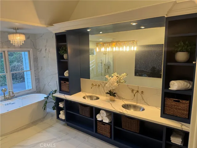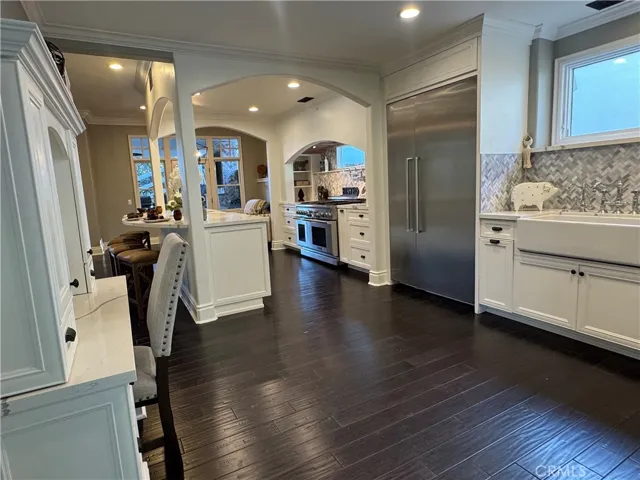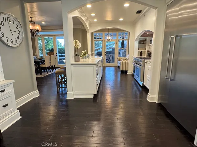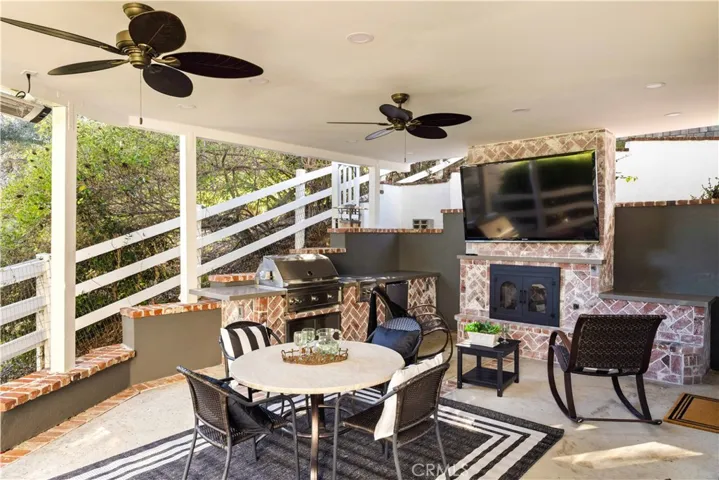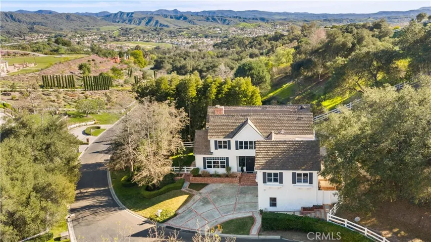Spanning nearly two acres at the end of a cul-de-sac, this private estate combines space, seclusion, and nearly $300K in recent renovations to create something truly rare. Arrive to manicured landscaping, a three-car garage and abundant architectural charm with fresh paint inside and out. Hardwood floors flow throughout the main and upper levels. Inside, a two-story foyer opens to formal living and family rooms each with a brick fireplace. The dining area flows into the kitchen, framed by walls of custom built-ins. Home chefs will love the high-end Thermador appliances, including a refrigerator, range with dual ovens, three mini-refrigerators, microwave, coffee machine, three dishwashers, and a walk-in pantry. The kitchen is newly updated with quartz countertops and breakfast bar, tile backsplash, Italian faucets for dual farmhouse sinks and a pot-filler. This level also includes a versatile bedroom and multiple sets of French doors for outdoor living. Modern infrastructure is integrated throughout, including a security system, wired ethernet, six mounted smart TVs, and Sonos surround sound. The home is equipped with 49 fully paid solar panels, two HVAC systems with new ductwork, new water heater, smart thermostats, and Tesla and CCS1 Level 2 EV chargers. Upstairs, the primary suite offers vaulted ceilings, private fireplace, and a fully remodeled spa-inspired bath. An attached retreat can serve as an office, nursery, or gym. Four additional bedrooms on this level each feature new carpet over hardwood and upgraded mirrored closets, alongside a flexible guest room and a beautifully renovated laundry. Two more baths on this level have also been fully remodeled. The grounds are designed for entertaining, featuring a newly remodeled California room with recessed lights, ceiling fans, heat lamps, herringbone fireplace, 80″ TV and outdoor kitchen with Lynx infrared grill, dual burners, quartz counters and refrigerator. The generous side patio and fenced yard features a lush lawn backing to mature trees. The lot size offers potential to build a pool, spa or equestrian facilities. Additional improvements include a new double waterproof roof in 2024, waterproofed walls, and gutter railings. Residents enjoy exclusive amenities including horse trails and the renowned Golf & Racquet Club with two championship courses, tennis courts, gym, and clubhouse. Ideally positioned near diverse shopping and dining, this property offers a sophisticated and sought-after lifestyle.